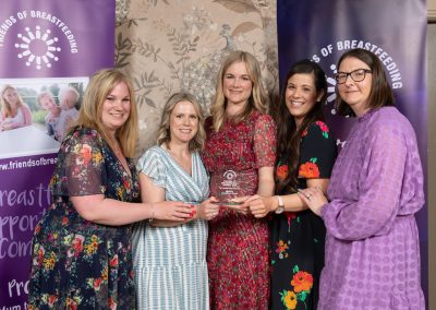 We will enjoy a prosecco reception and a delicious two course celebratory lunch with our Guest of Honour and FoBF Advocate of the Year 2024 Dr. Jennifer Hanratty, there will be got bags and a raffle with some amazing prizes, and of course, the presentations of the FoBF Awards to our 2025 breastfeeding champions.